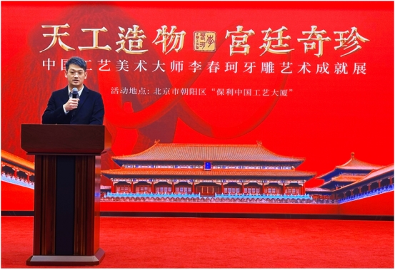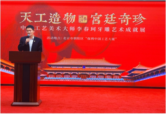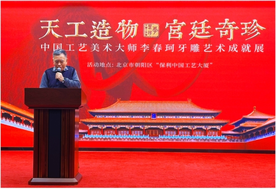 中藏文博艺术品评估中心董事长周天意在发言中讲到:像我们李大师这样既传承宫廷牙雕技艺,又能将南北牙雕技艺相融合的国大师,全中国仅有李春珂大师一人。