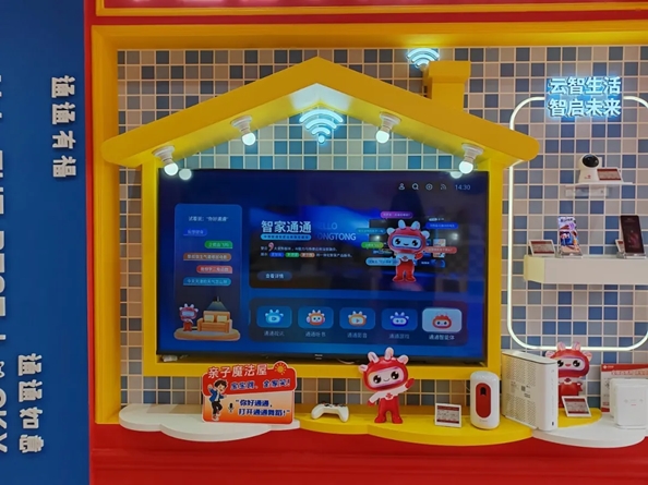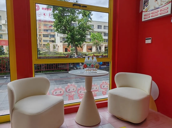 不同于传统营业厅的色调,这里用红蓝黄白撞色打造出活力四射的“云智生活”主题空间。工作人员笑着解释:“随着巴黎春天二次元商场的开业,以及现所·创邑MIX时尚年轻的定位,我们想让周边居民和上班族一进来就感受到时髦和温度。”果然,连标语都透着俏皮劲儿——“通通开心”“通通如意”,让人忍不住想集齐四句召唤好运。
