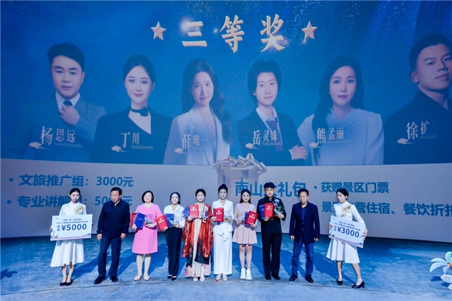 本次比赛,南山景区各位员工积极参与、踊跃表现,为此,南山景区特别增设职工组奖项,希望借助本次比赛,发现更多景区人才、助力南山文旅蓬勃发展。刘滨冉获得职工组一等奖,薛唯一、孙晴获得职工组二等奖,车好、余翀、熊孟丽获得职工组三等奖。尹达原、史曼仪、金婉瑶、裴燕芳、陈创、梁月燕、杨倩、李佳昕、陈美净、尹杏源获得职工组优秀奖。
