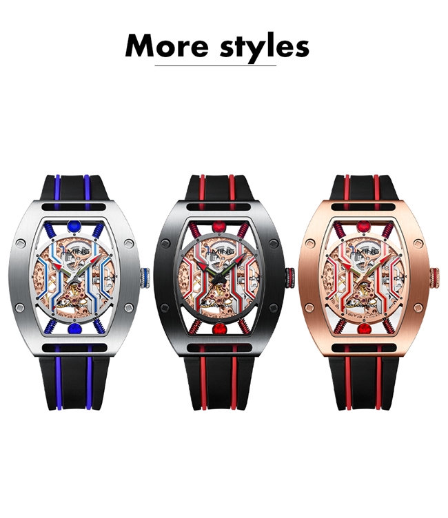 越野系列:榫卯结构灵感,方形镂空表壳展现机械连结之美。